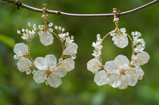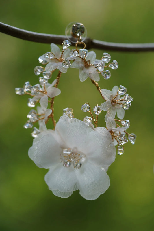 Braut Creolen silber weise Blüten Hochzeits Ohrringe