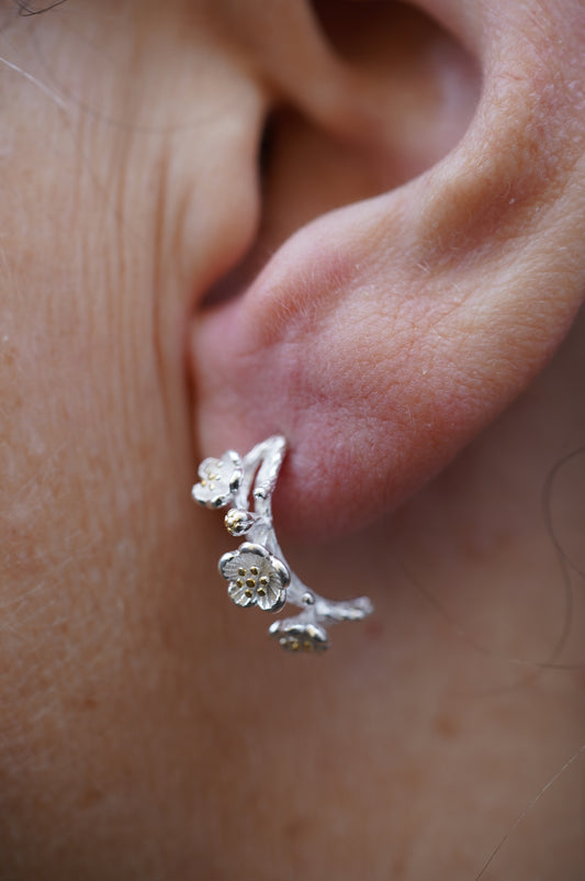 Blüten silber 925 Halbcreolen Kirschblüten Ohrringe Damen