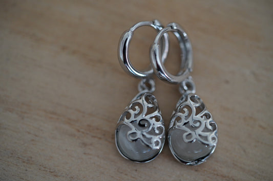 Mondstein Ohrringe, silber Monstein Ohrringe, Damen Creolen