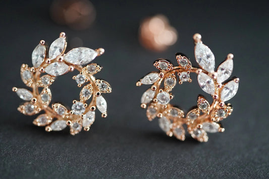 rosegold Reifen Ohrstecker,Blatt Ohrringe Zirkona, Zirkonia Mini Stecker, festliche Ohrringe, Geschenktipp Weihnachten, Geburtstagsgeschenk, Vatentinstagsgeschenk
