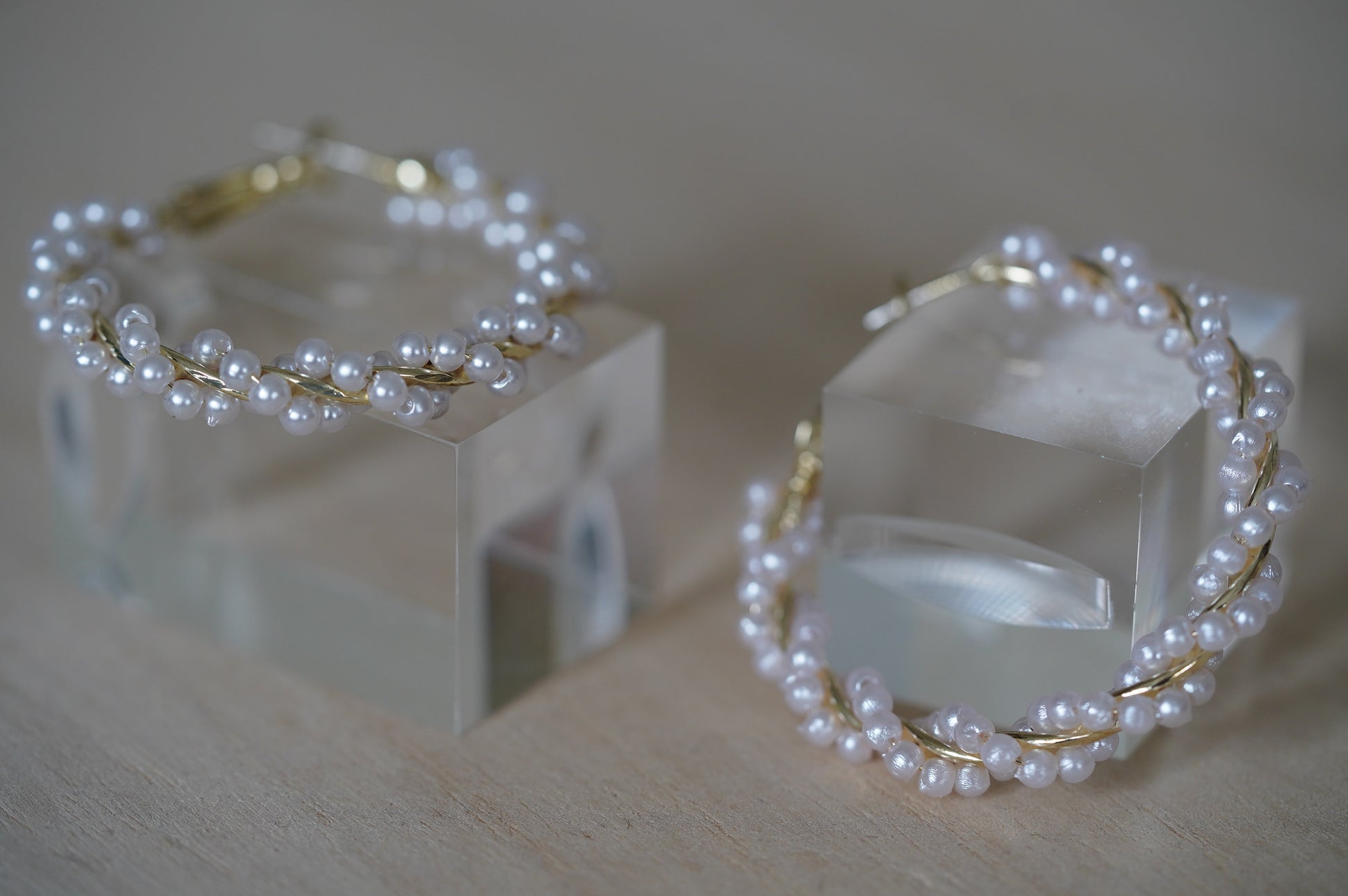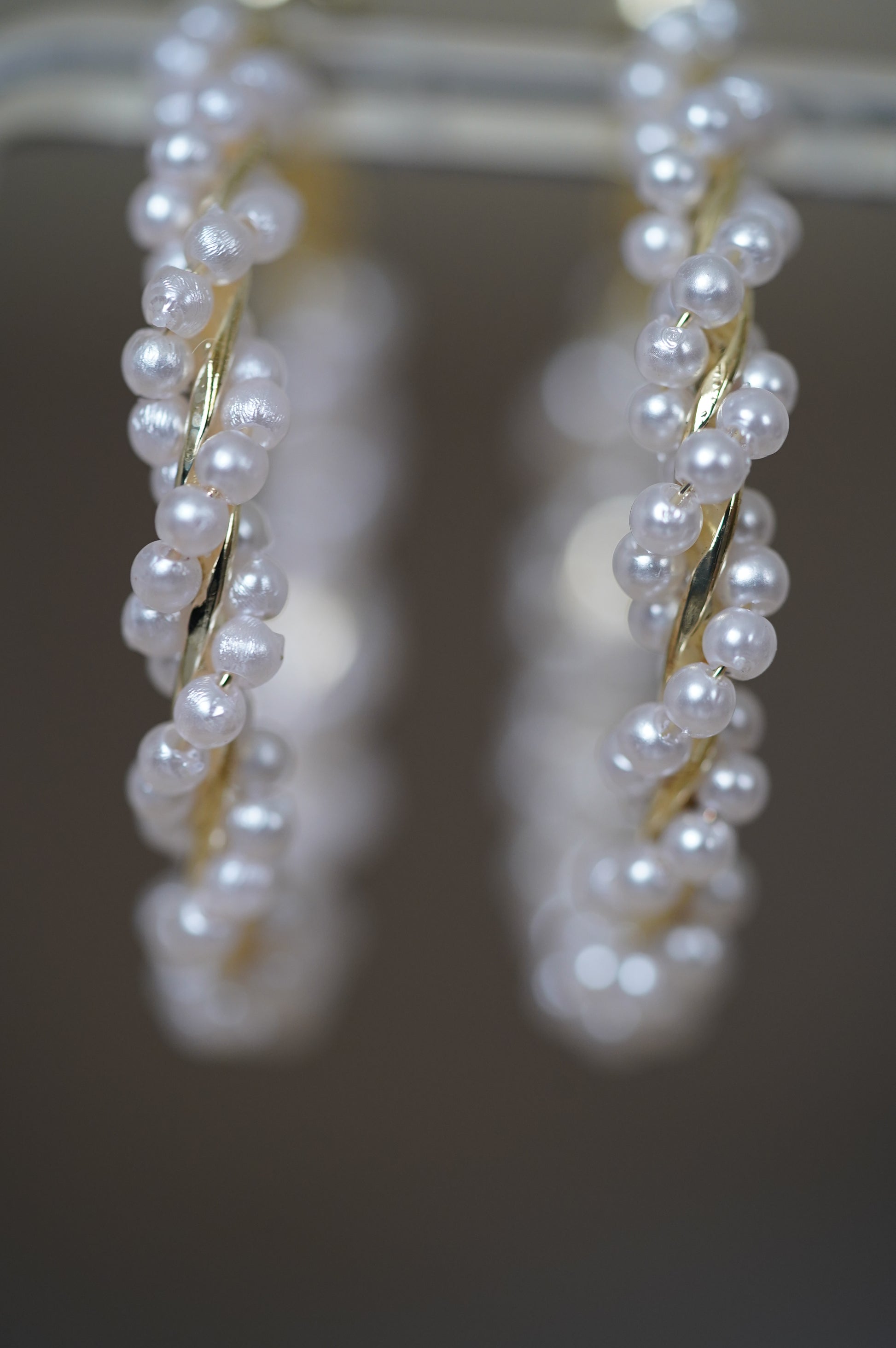 feine Hochzeits Creolen in gold besetzt mit Perlchen. Die Creolen haben einen Durchmesser von ca. 45 cm . Der verspielte Romantik style passt sich in viele Braut Themen wie Vintage Style klassische Pelen Creolen oder Perlenschmuck generell ein.