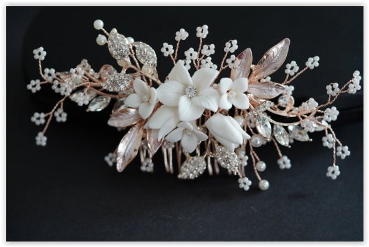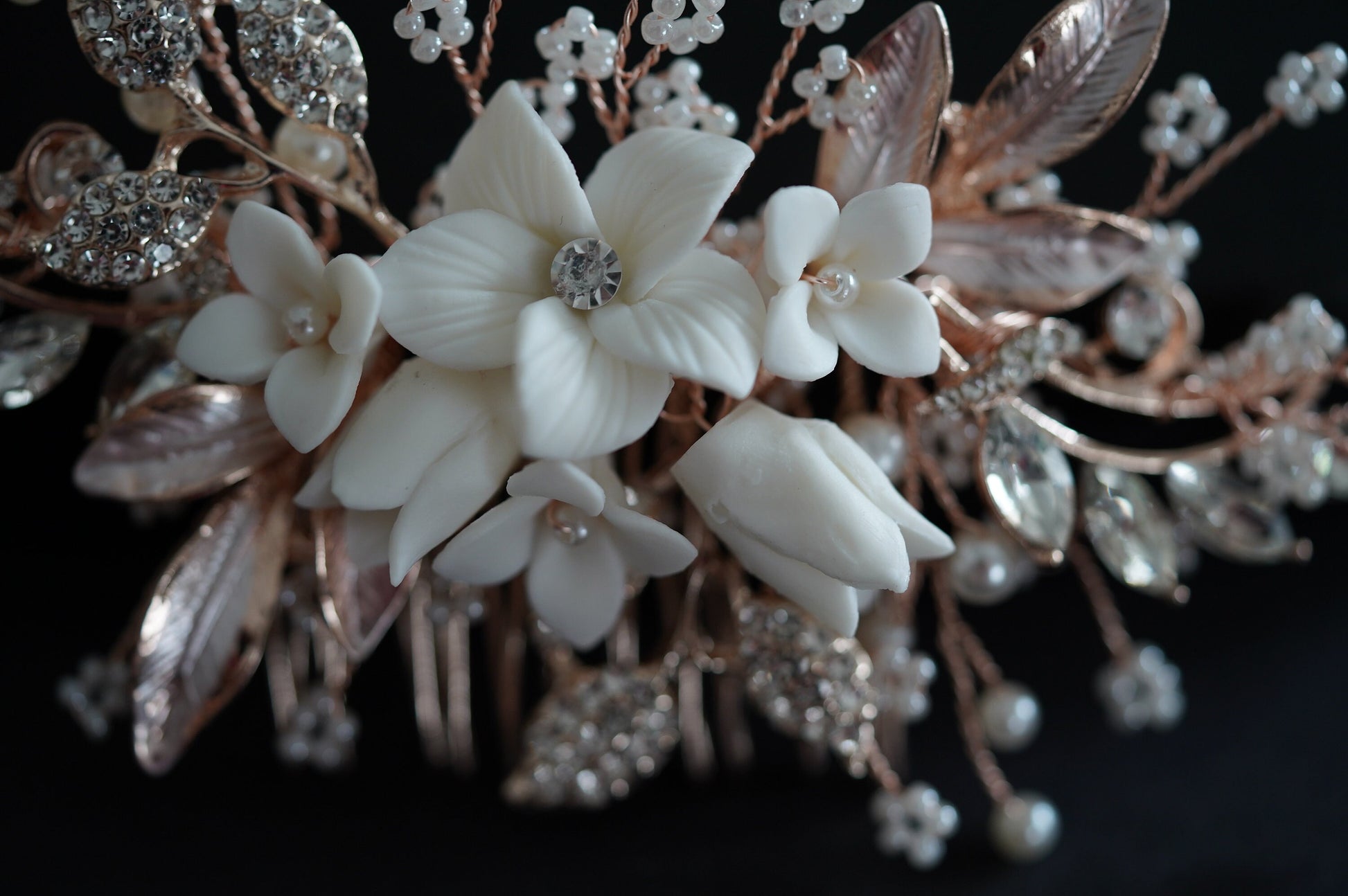 Braut Haarkamm rosegold,silber,gold, Hochzeits Haarkamm, Vintage Hochzeit, weise Blüten Haarkamm, Boho Hochzeit,
