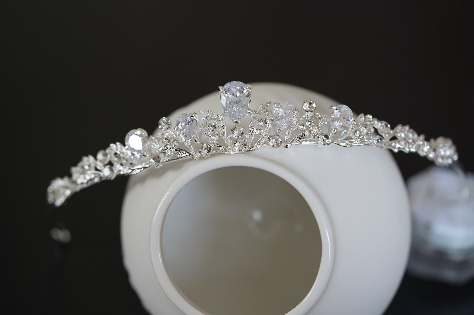 kleines feines Hochzeits Diadem ca 28 mm hoch (Spitze) besetzt mit funkelnden Zirkonias.