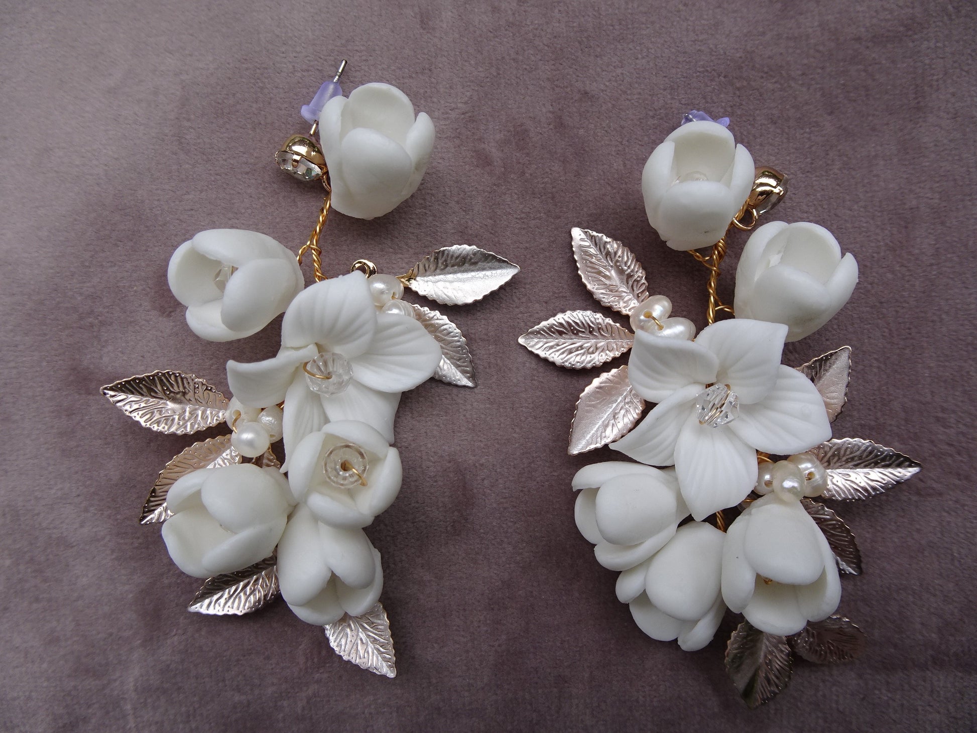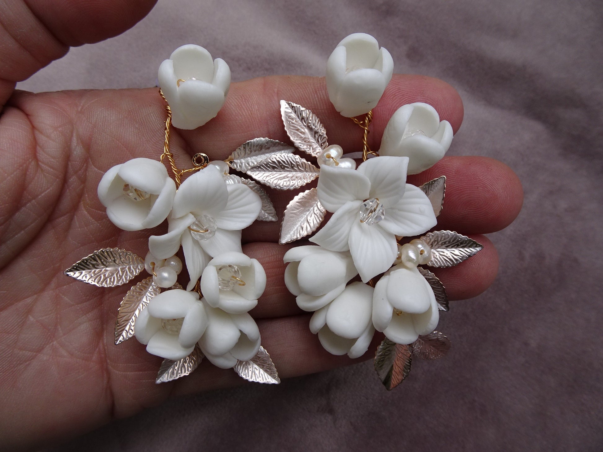 Braut Schmuck de besonderen Art weise Blüten Hänge Ohrringe ca 6 cm . Diese weißen Boho Blüten Ohrringe passen sich zu vielen Styles an.